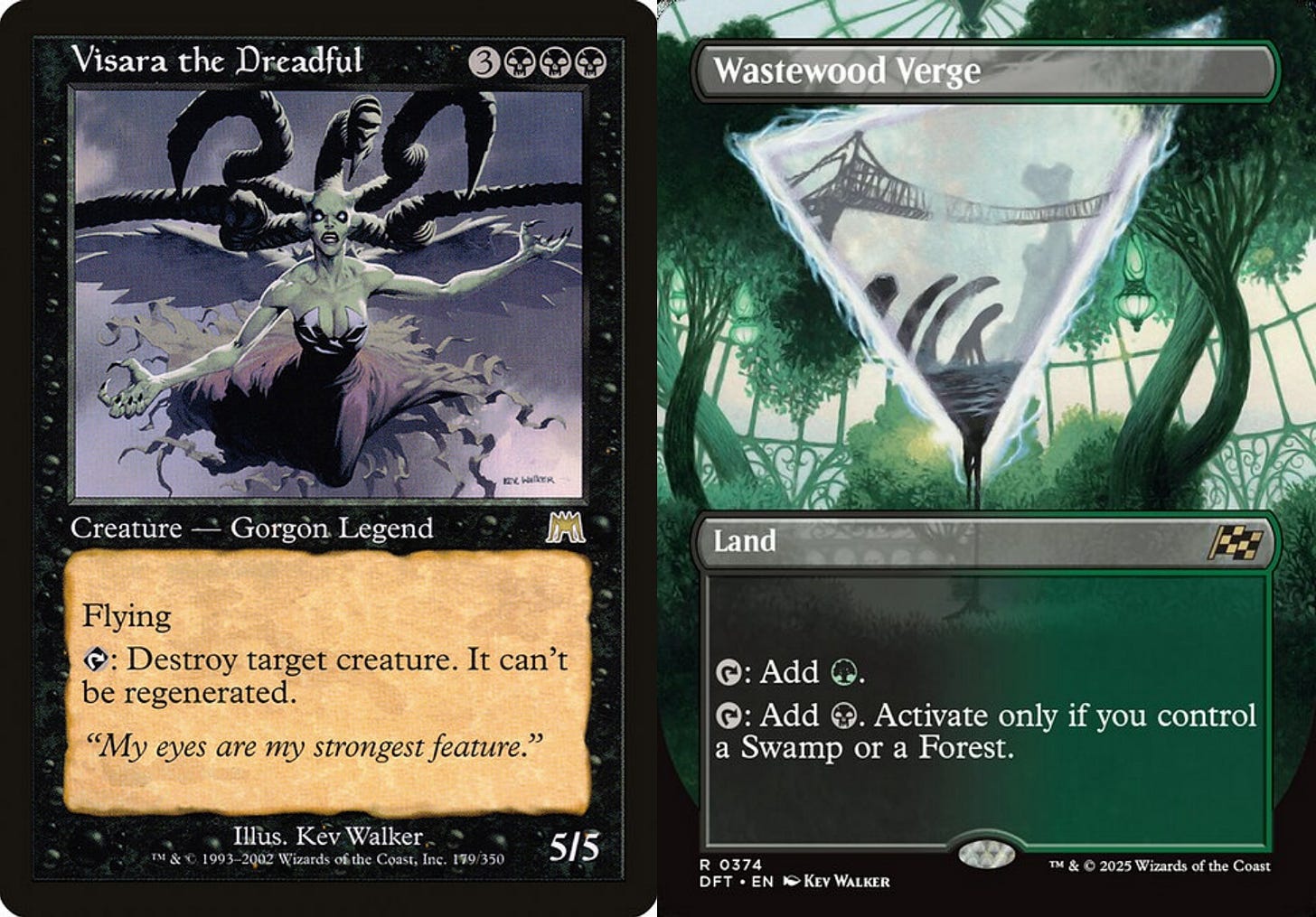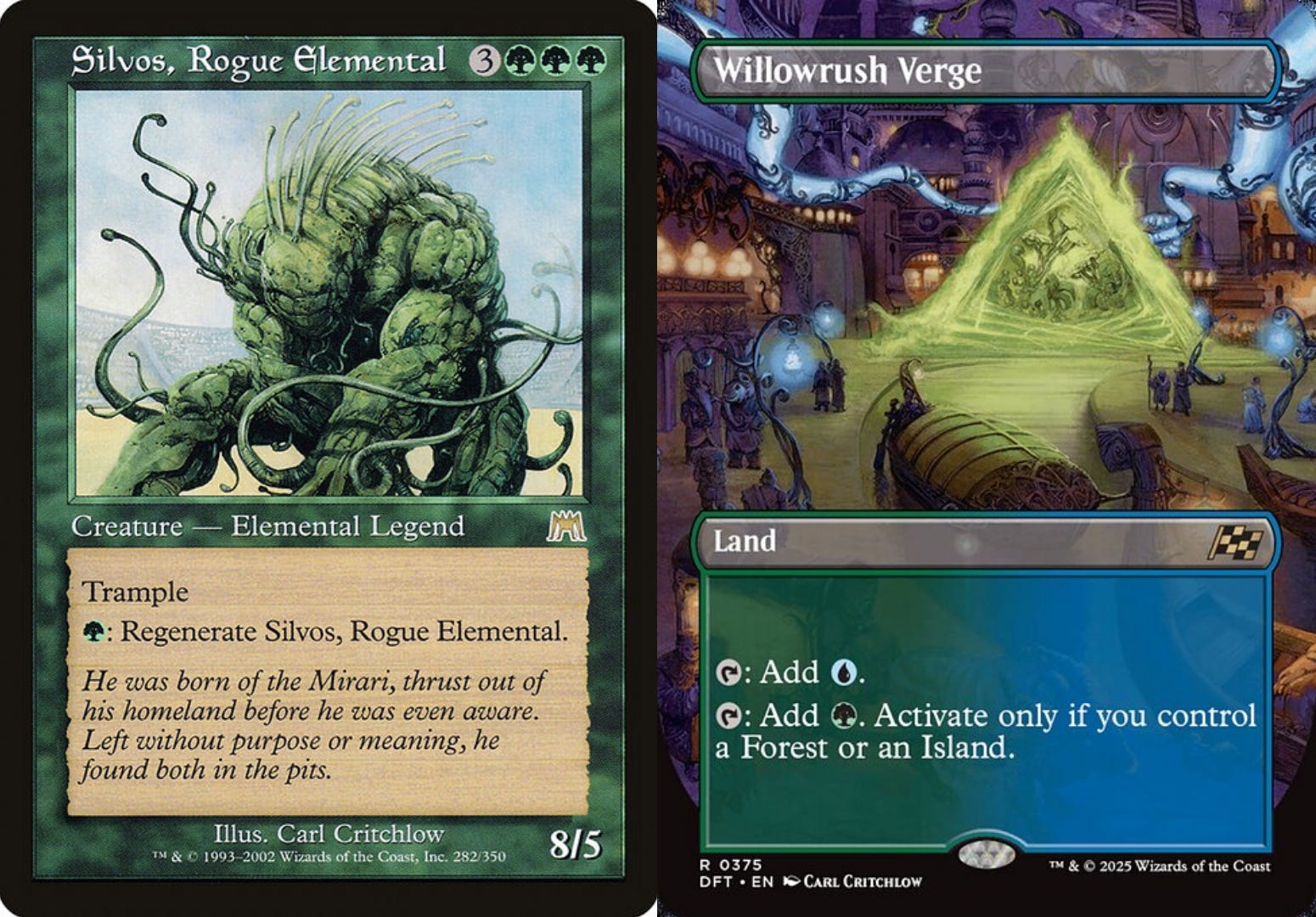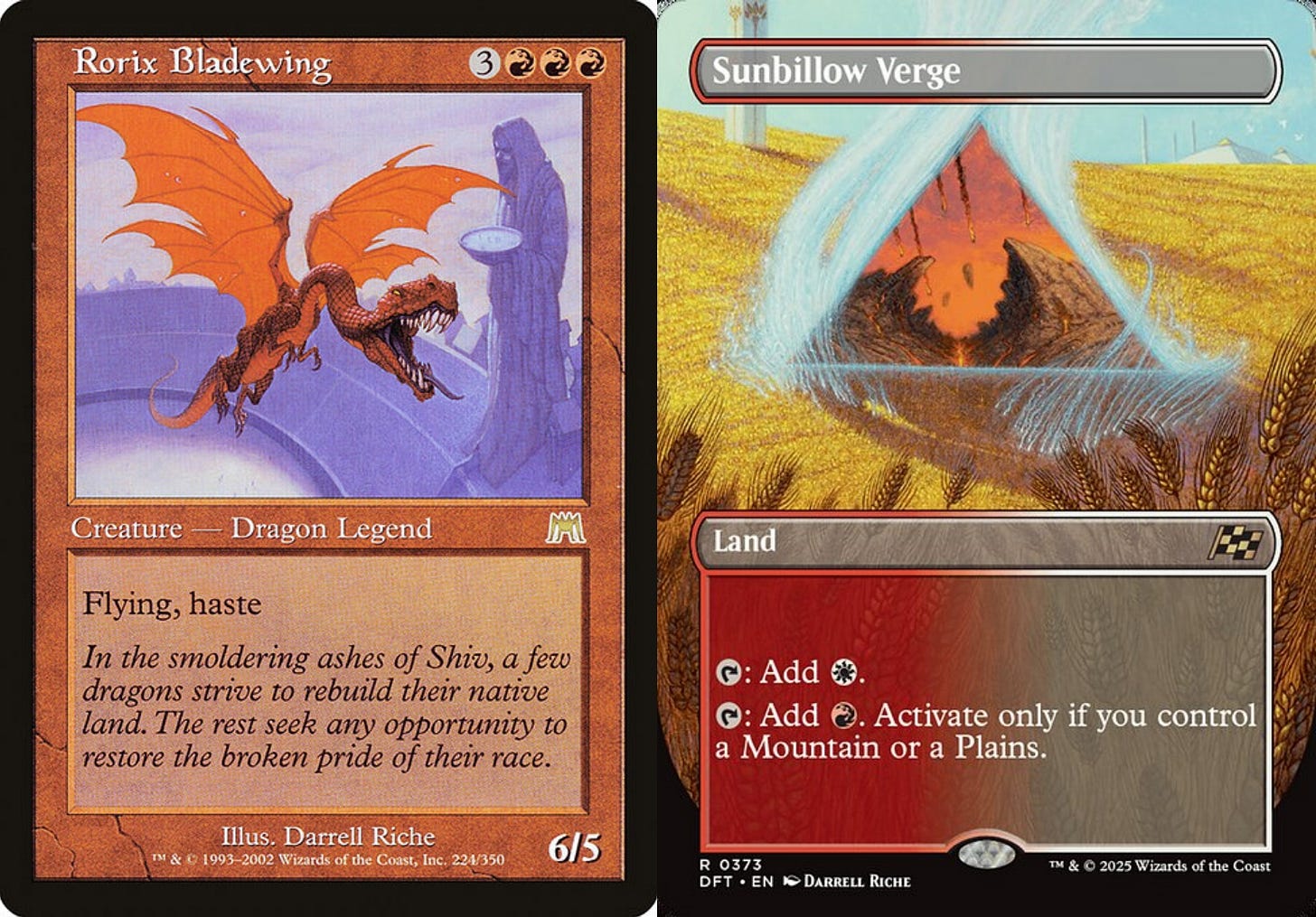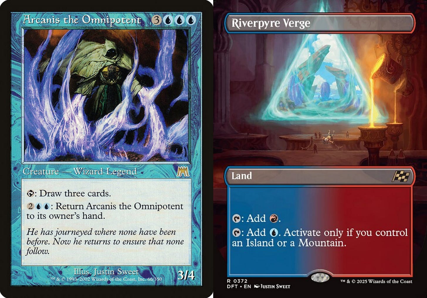 The cycle has now been renewed, given new life in Magic’s most recent set, Aetherdrift. Art Director Vic Ochoa commissioned each original artist for the Borderless Verge corresponding to the color of their original legend. It’s a beautiful connection more than twenty years apart.