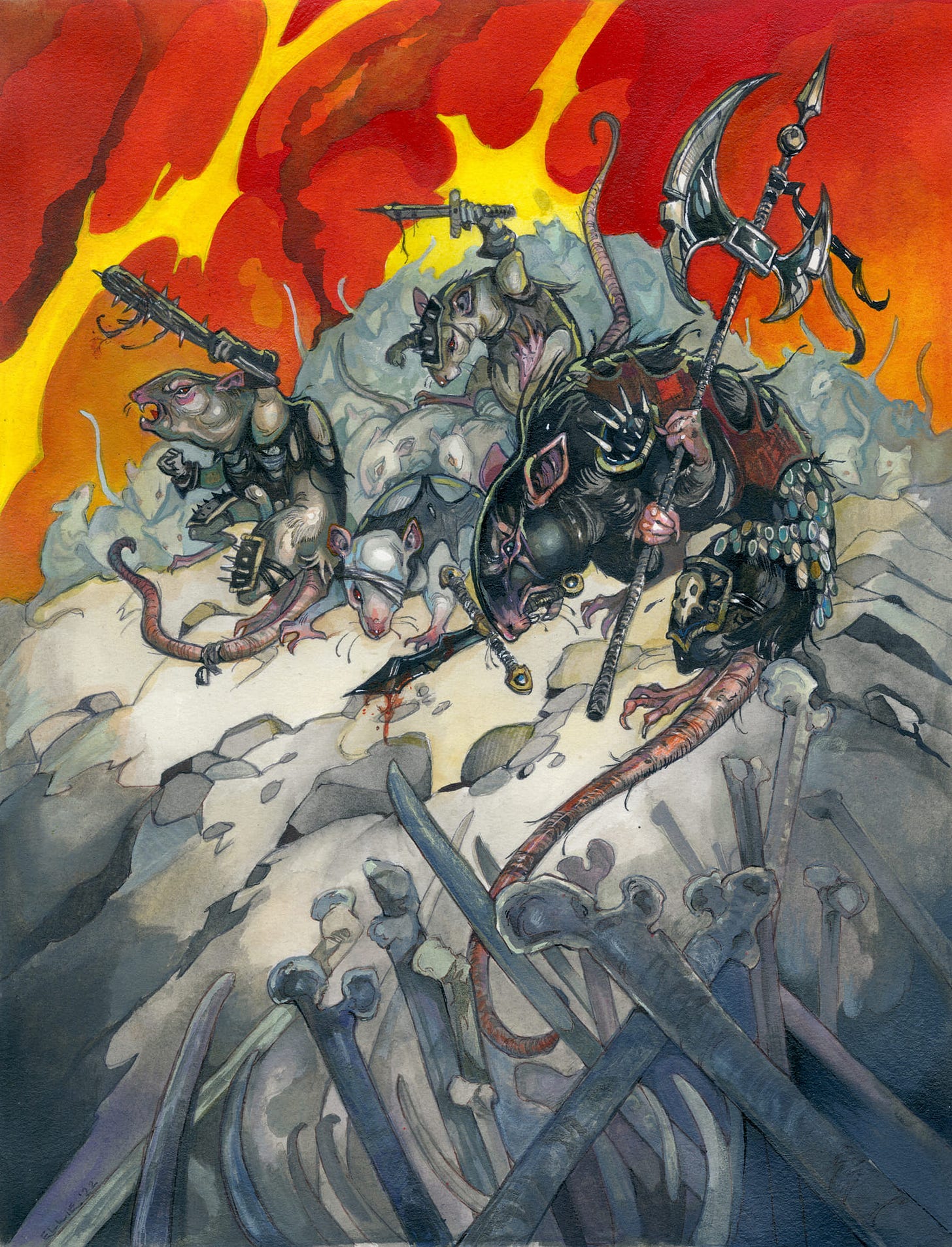 All I ever wanted to do was draw, and specifically for games. When people asked me what type of illustration job I wanted, I would just tell them I want to be the person who makes the art on the Magic cards or draws the monsters in the Monstrous Manual. When I eventually went to school for illustration after highschool I struggled with receiving a lot of feedback that my style was kind of dated. For my senior portfolio review at Mass College of Art one of the teachers left a sticky note on my portfolio that just said “Try a more modern style”. I would submit to Spectrum but couldn’t get in. At some point a couple of years ago I felt like I was finally coming to terms with the fact that my art wasn’t going to fit into modern fantasy gaming, and I was kind of depressed. Almost like, did I spend my whole life trying to emulate the art I love only to make myself an anachronism in the industry I loved? I had just received some more feedback like that from some folks I respect, and I was trying to be gracious and just kind of accept it (but also having a big cry about it lol) and a couple of months later I got an email from Tom (Jenkot) at Wizards that they wanted to have me work on a Relentless Rats alternate. I don’t mean to be hyperbolic but I think it was one of the happiest days of my life.